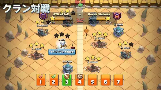 ● Watch live or replay videos of clan members' attacks and defenses.
